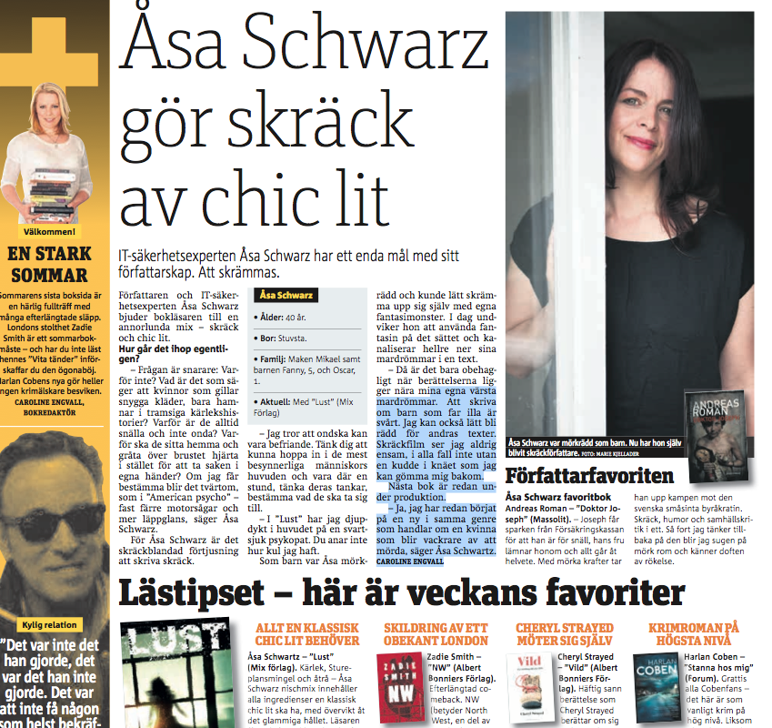 Det var svårt att inte bli glad när jag öppnade Metro idag. Intervjun visste jag skulle dyka upp men den trevliga recensionen under rubriken ”Lästipset – veckans favoriter” hade jag ingen aning om: